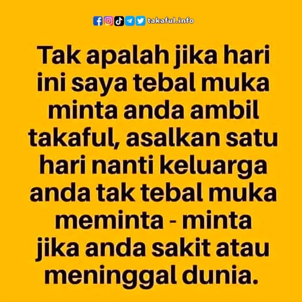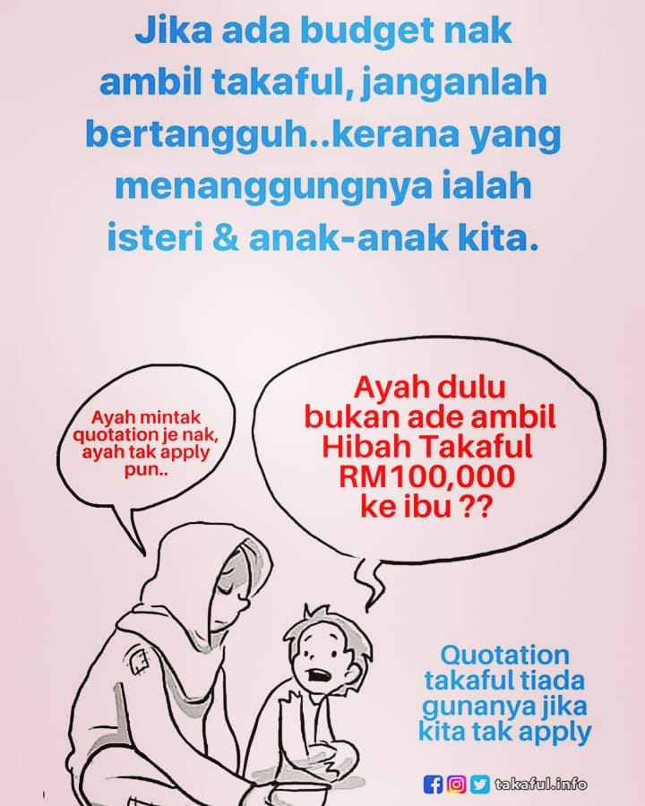 Kerana anda merupakan breadwinner atau pencari nafkah bagi tanggungan anda. Sekiranya anda ditakdirkan untuk pergi dahulu, waris-waris anda masih perlu meneruskan kehidupan seperti biasa. Inginkah anda membiarkan anak isteri anda hidup dengan penuh kemiskinan dan dibelenggu hutang-hutang anda?