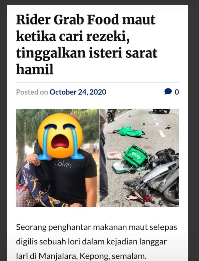 Lebih sedih lagi kalau rider grab dan rider food panda tu meninggalkan orang yang tersayang.