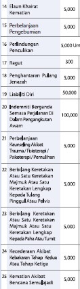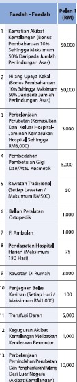 Premium insurance paling murah RM169 setahun. ya! kita akan bagi RM50,000 kat famili korang kalau meninggal akibat kemalangan. ada banyak lagi benefit dia. nanti download lah brochure kat atas tu.